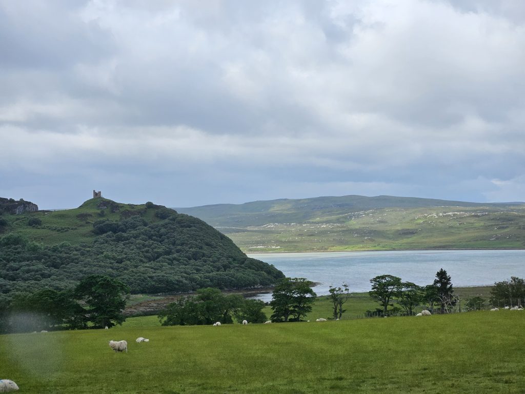 Our detour to the north coast brought us out near Strathy Point (which is beautiful but bleak) and we meandered our way along the single-track road through Bettyhill and Tongue (which was “shut”). Bearing in mind that it was early June when we did this trip, we were really surprised that a well-advertised tourist route like the NC500 has hardly any cafes or hotels open for lunch etc, but we did find a roadside cafe, just outside Tongue that I can’t remember the name of!