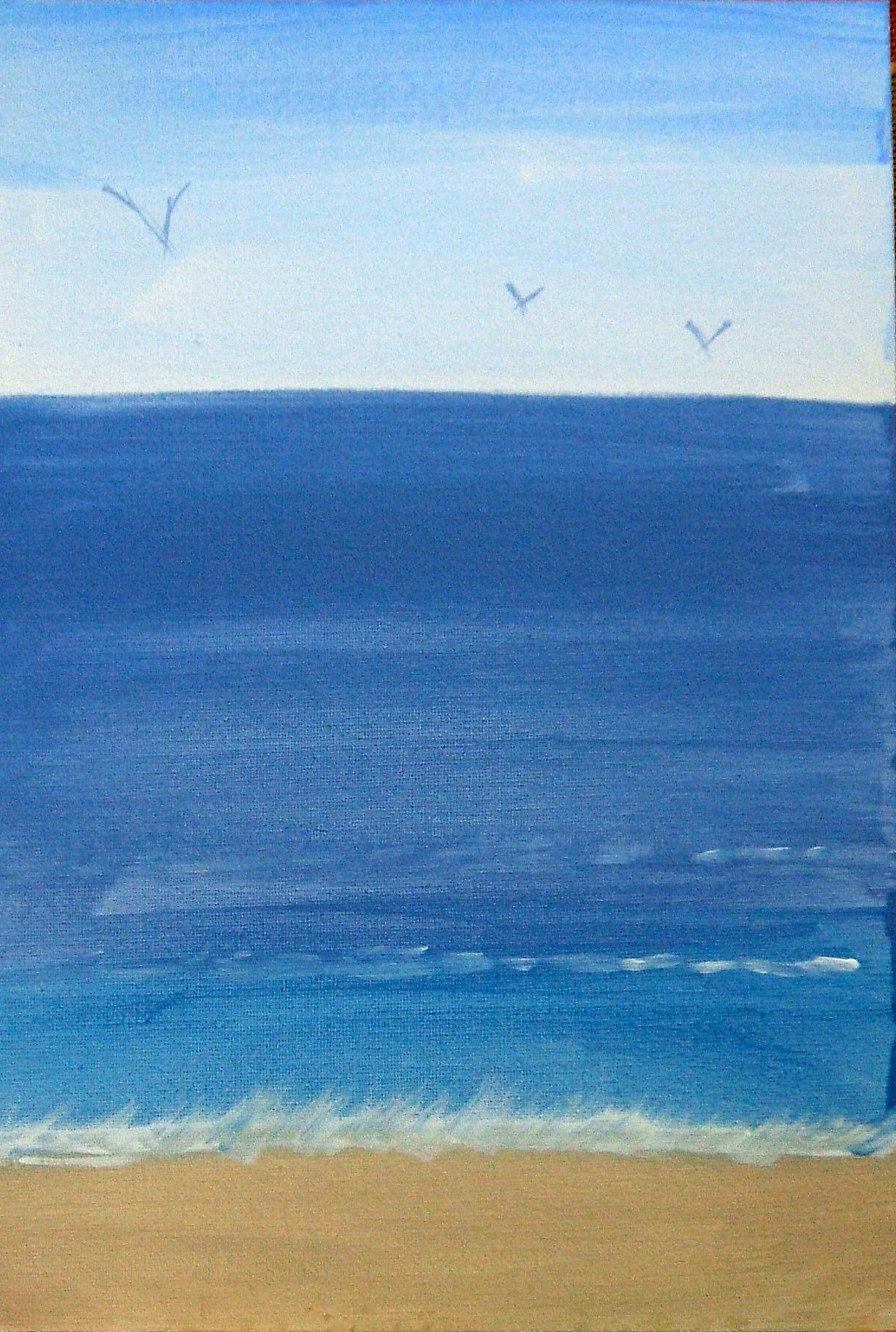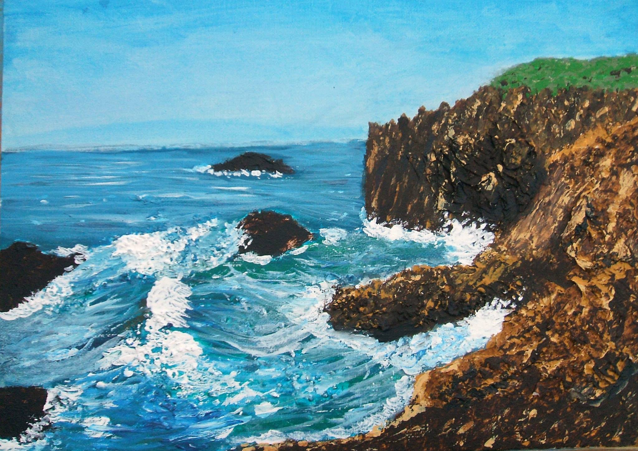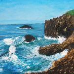 During the Lockdowns of 2020, I really missed going to our local beaches and coast. Therefore the only thing for me to do was bring the coast to me. I frantically scoured YourTube for acrylic seascape tutorials and stumbled across a wonderful channel Katie Jobling Art. Not only are her videos very informative and helpful, but they’re also incredibly relaxing to watch. I purchased some canvases, lots of seascape colour paints and I was off!